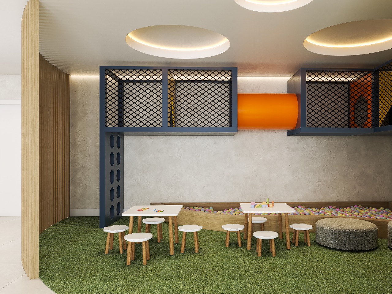 Tempo de qualidade na brinquedoteca. Espaço seguro onde seus filhos criam memórias enquanto você relaxa.